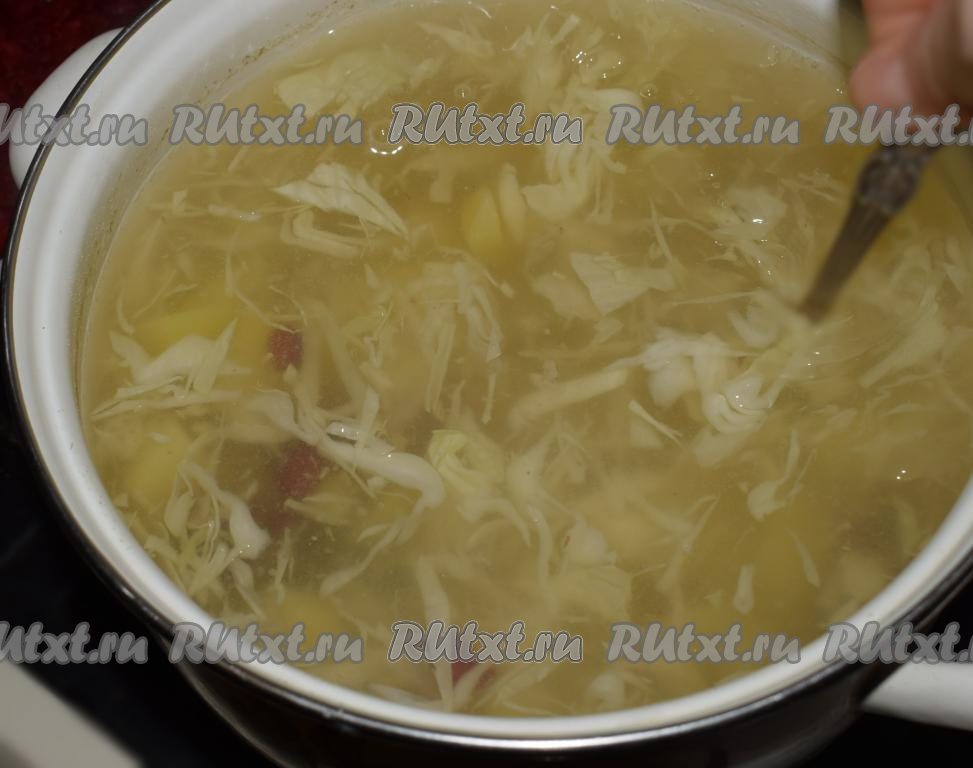 К картофелю добавляем капусту и консервированную фасоль, доводим до кипения, уменьшаем огонь и провариваем с момента закипания, примерно, 4-5 минут.