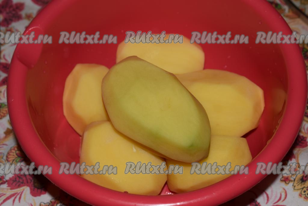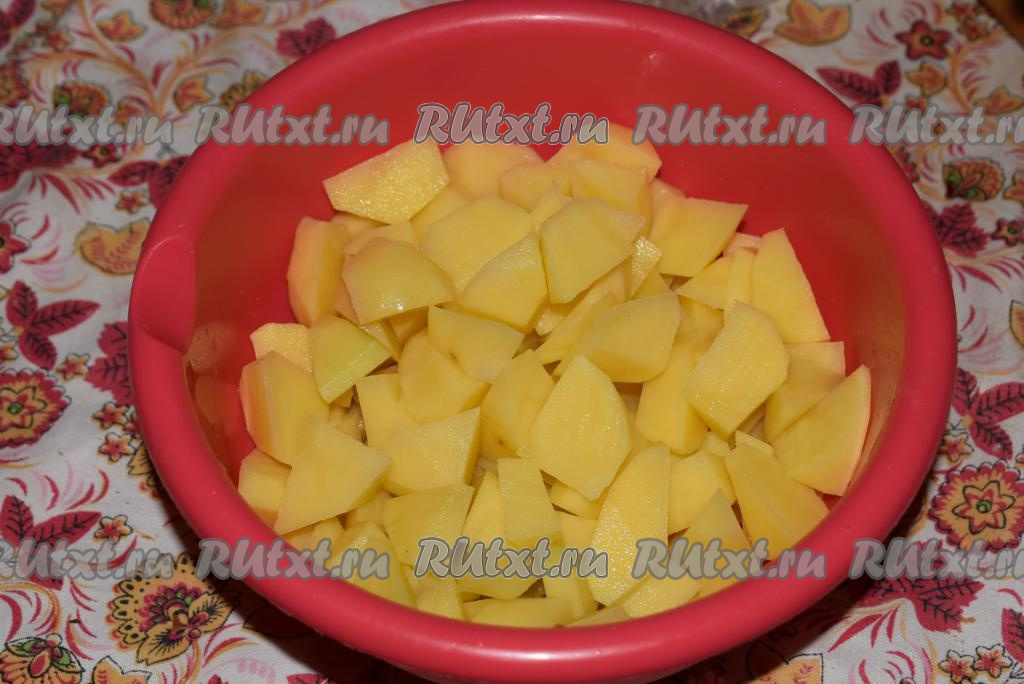 Картофель нарежем на кусочки среднего размера.