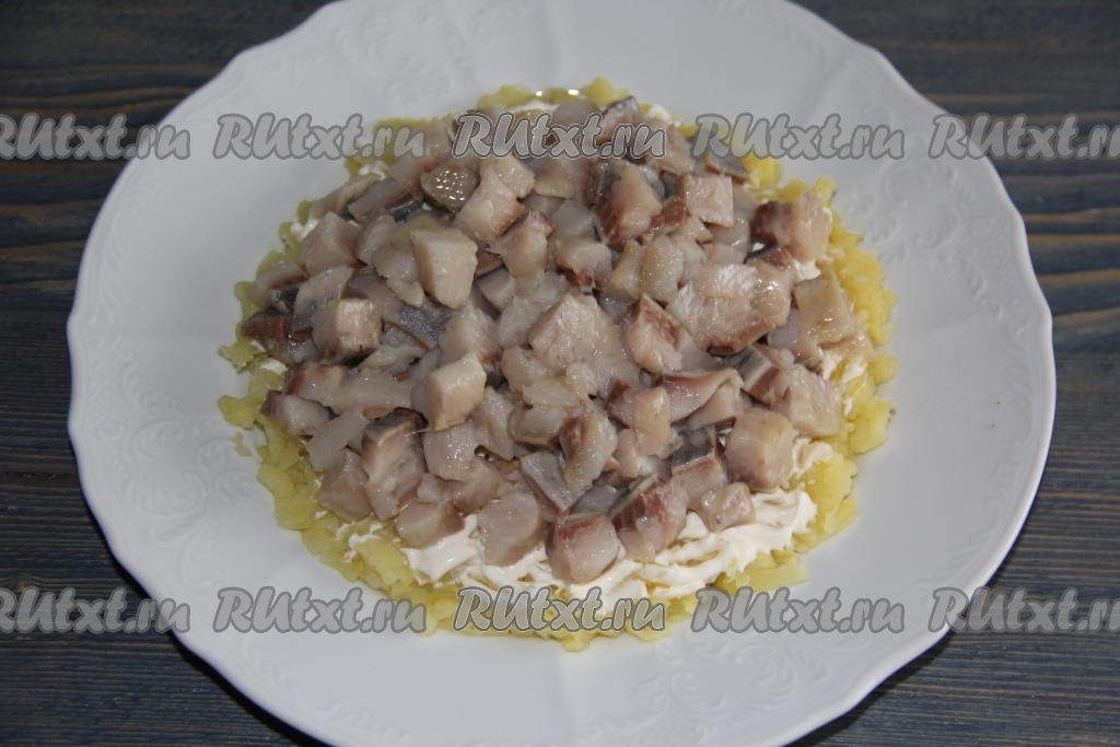 Затем выложить слой из селёдки.