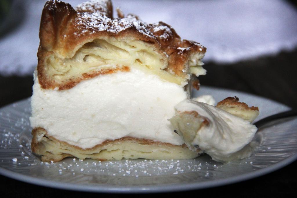 Нарезать торт на кусочки и подать к столу. По желанию, перед подачей можно присыпать верх торта сахарной пудрой. Посмотрите, какой аппетитный кусочек и какое стойкое суфле. Порадуйте своих родным этим аппетитным тортом "Карпатка", приготовленным из заварного теста, с восхитительно-нежным кремом. Я уверена, вы еще не раз вернетесь к этому рецепту!