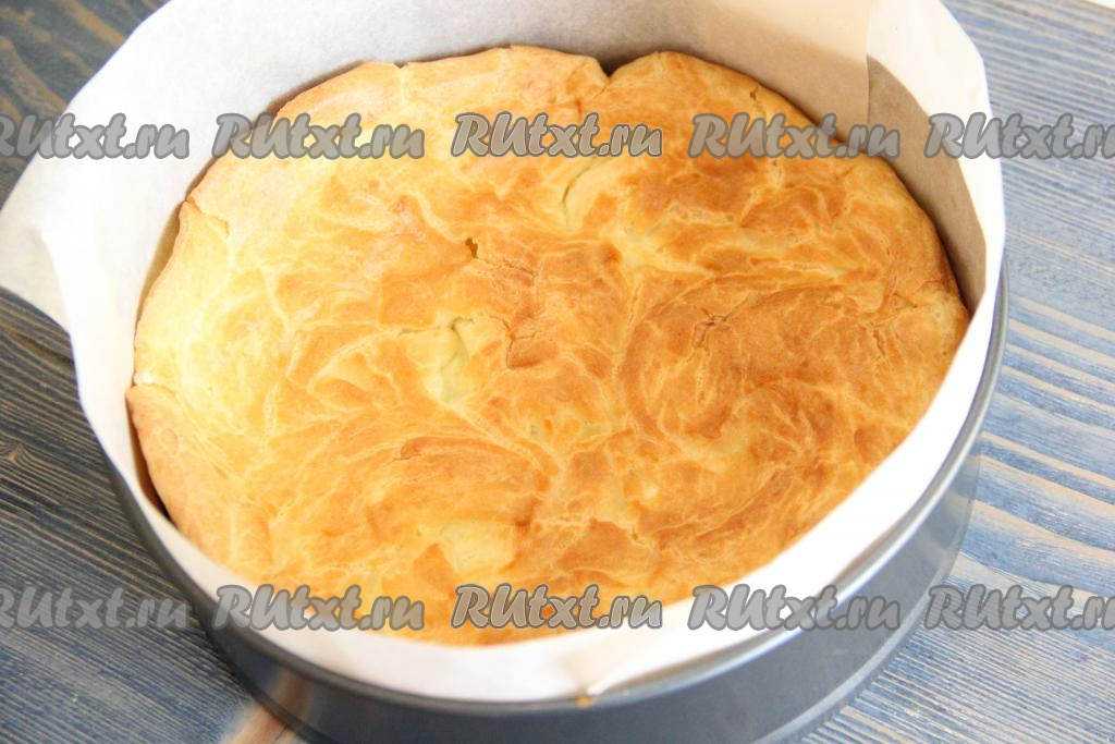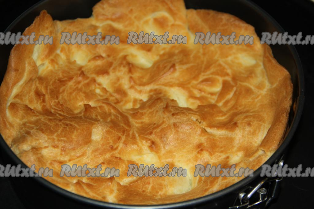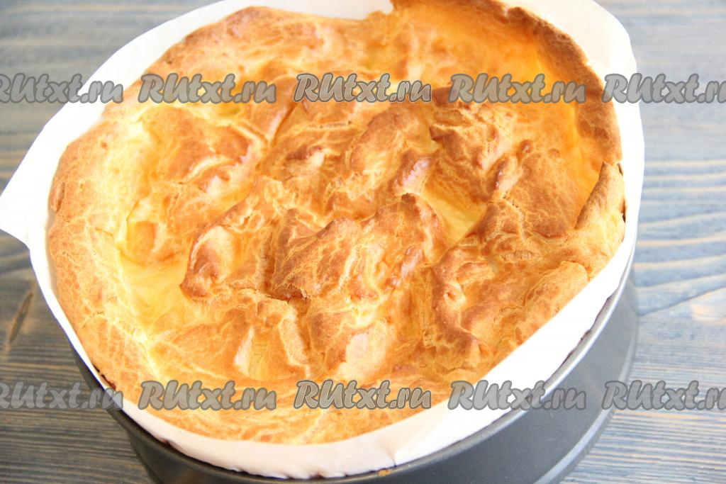 Выпекать корж в разогретой духовке при температуре 200 градусов, примерно, 25 минут. Корж должен подняться и стать красивого золотистого цвета.