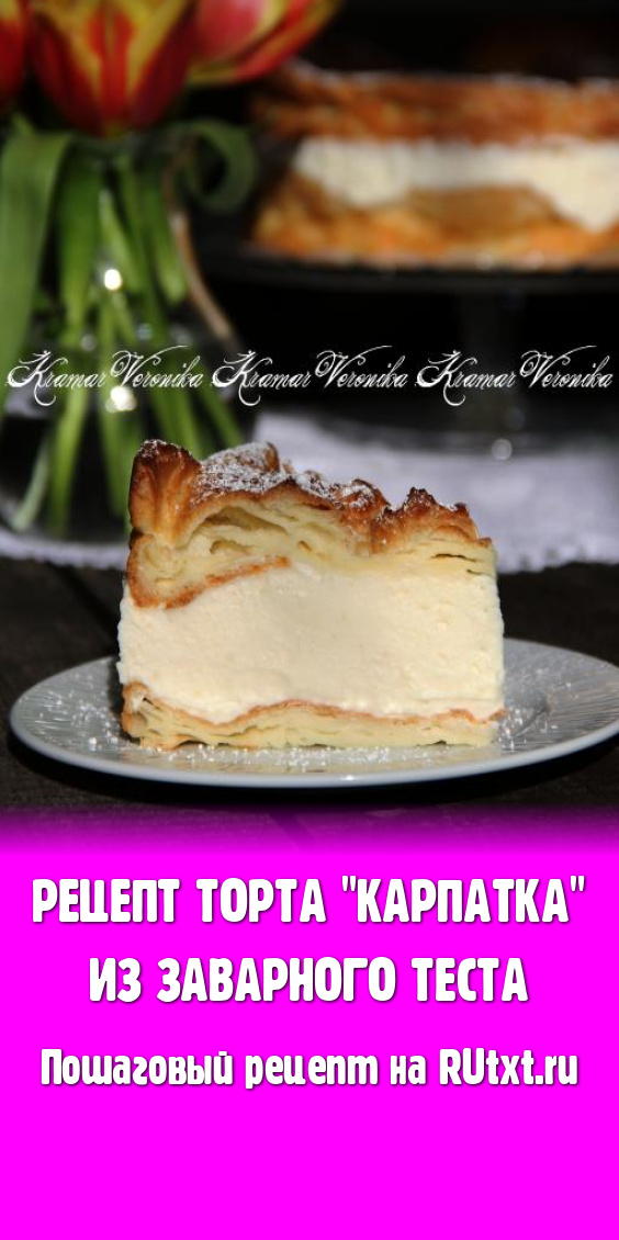 Торт "Карпатка" - это великолепное лакомство из заварных коржей и вкусного, нежного суфле из заварного крема. Сейчас это мой фаворит из всех рецептов тортов. Приготовление займёт немного времени, главное - дать тортику застыть. Торт получается необыкновенно вкусным, попробуйте!