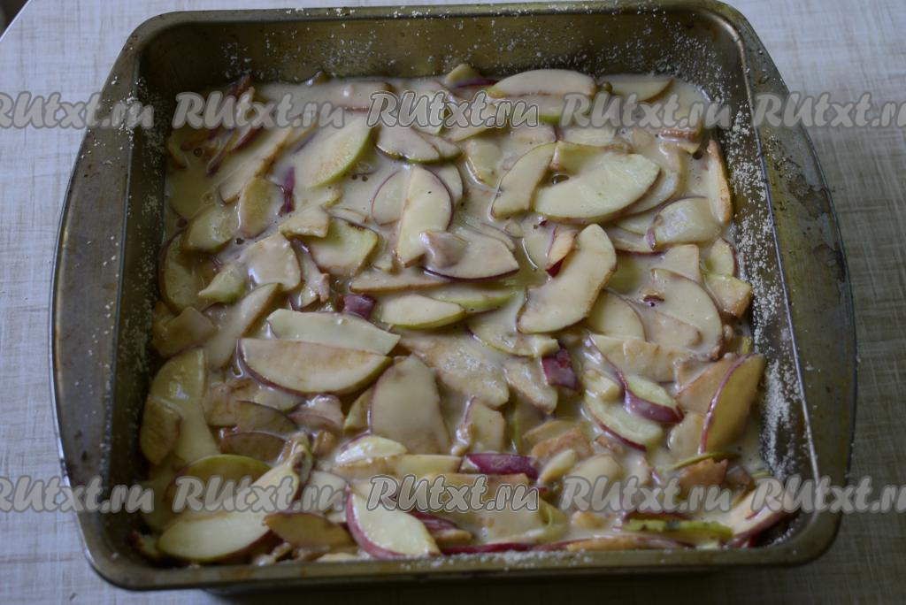 выливаем наше тесто с яблочными дольками.