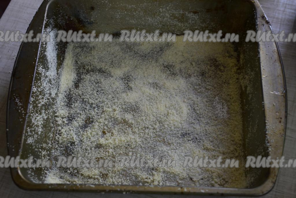 В форму (примерный диаметр формы 20 см), смазанную маслом и присыпанную мукой или манкой,