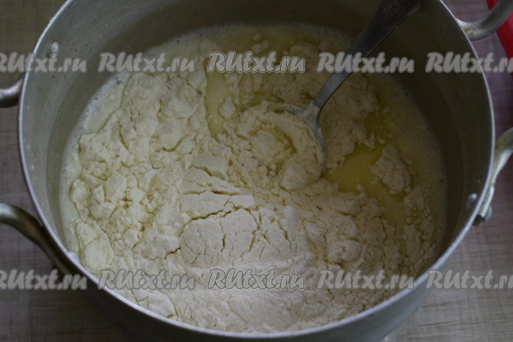 Всыпем муку и перемешаем.