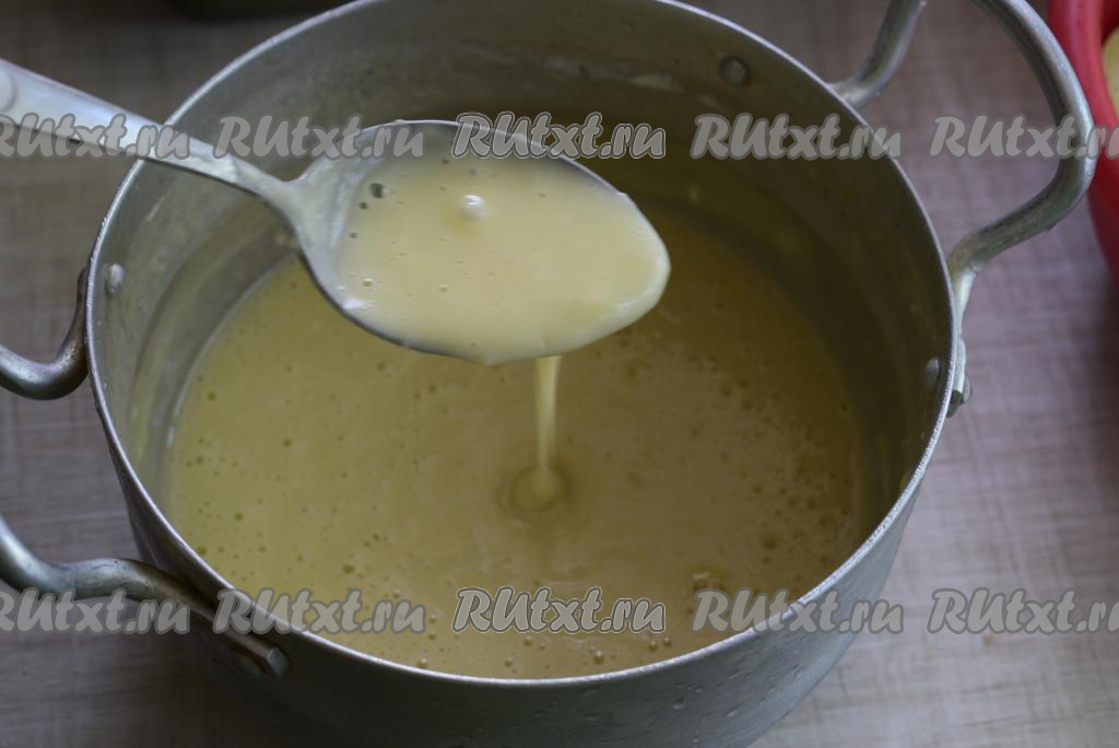 Перемешаем тесто, оно должно получиться жидким (как на фото), по консистенции будет напоминать блинное тесто.
