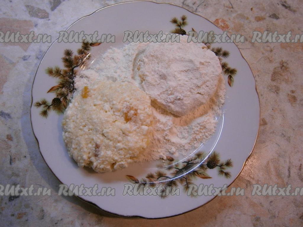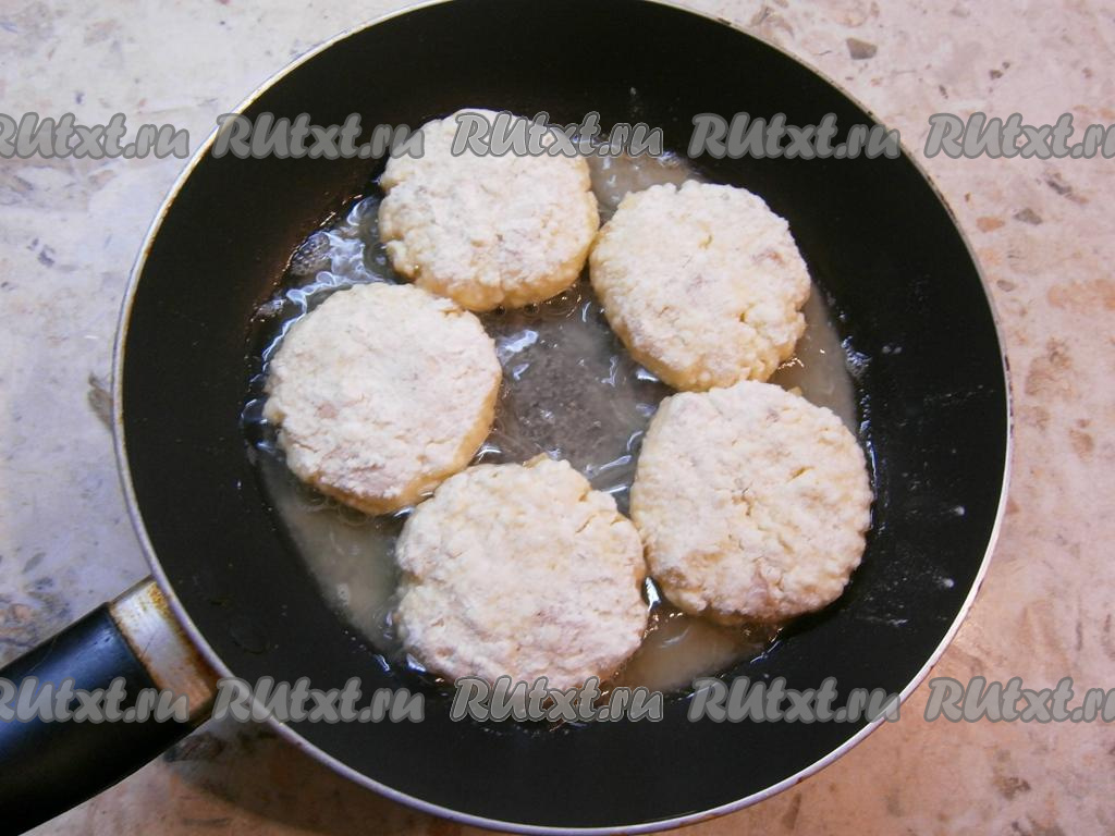 Жарить сырники на среднем огне до румяного цвета с двух сторон (примерно, по 2-3 минуты с каждой стороны).