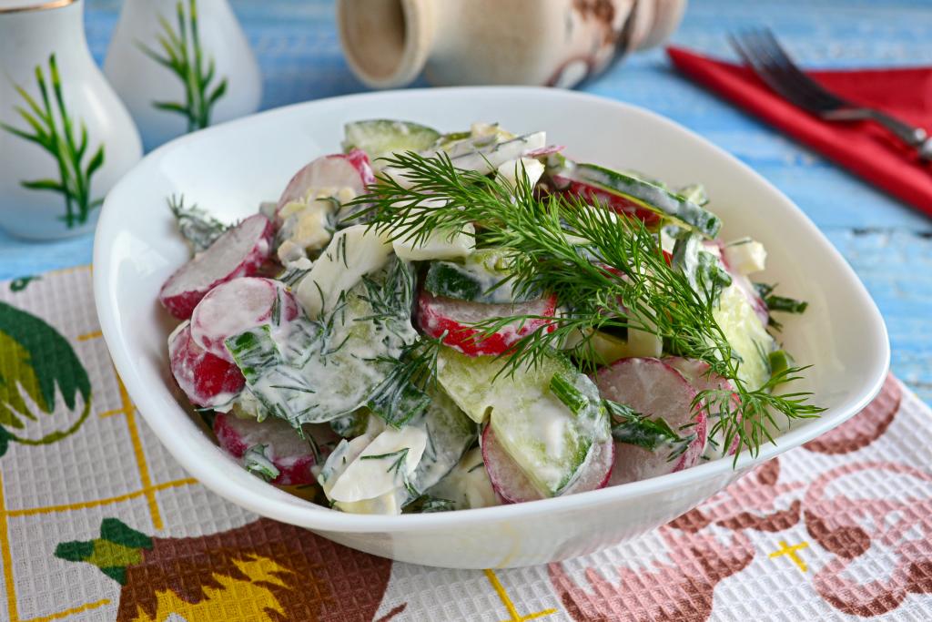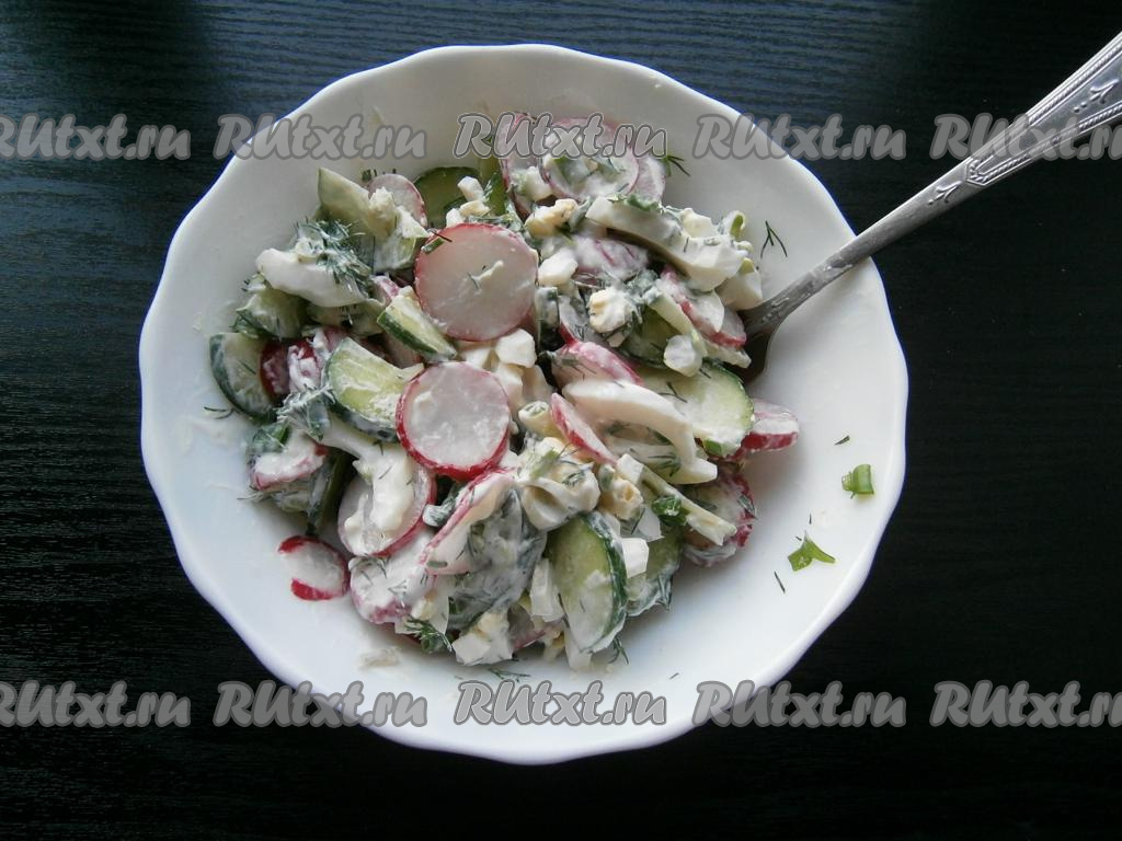 Салат из редиса с огурцом и яйцом - очень вкусный весенний салатик, который мы готовим как только появляется свежая весенняя редисочка. Сочетание овощей, зелени и сметаны - это очень вкусно, свежо и ароматно! Яйцо отлично гармонирует в этом салате с редисом и огурцом, делая блюдо более сытным. Приготовьте этот салатик обязательно!
