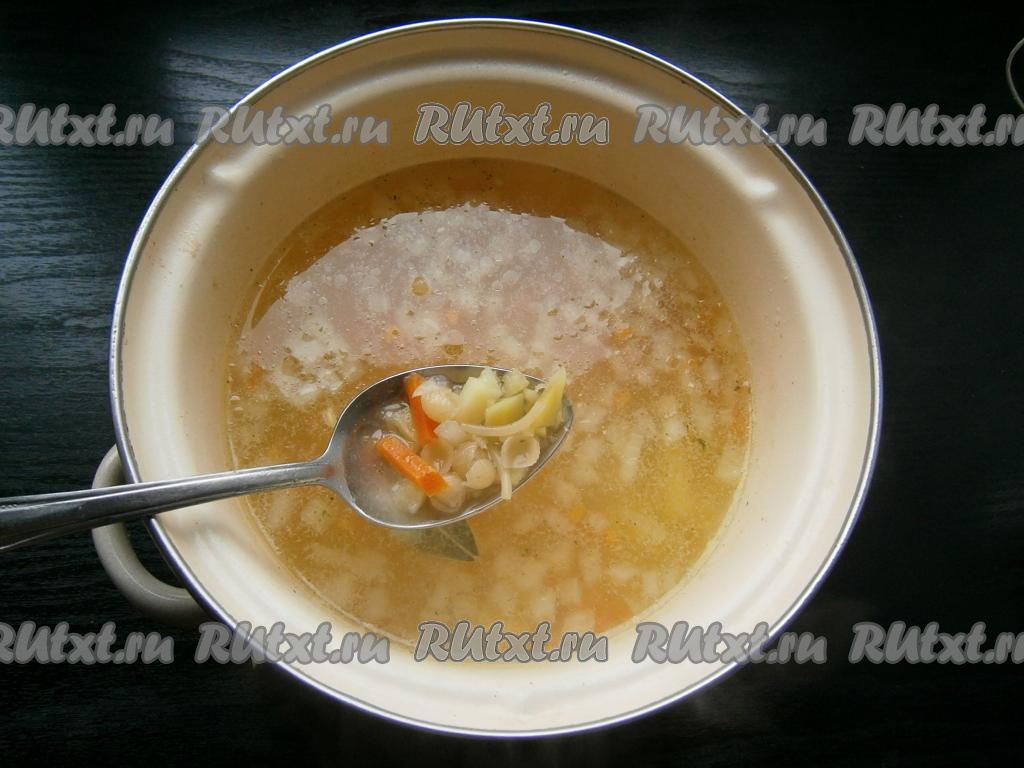 Варить далее на небольшом огне 25 минут, после чего перепелку вынуть из кастрюли. В суп добавить приправу, лавровый лист, измельченный чеснок и любые мелкие макароны.