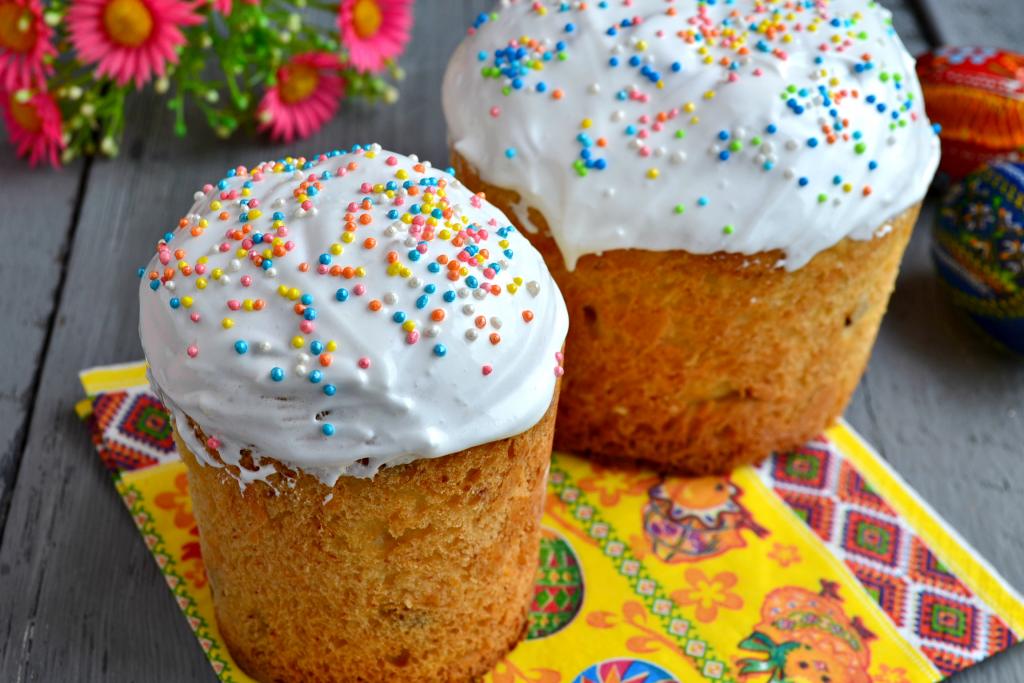 Глазурь получится белоснежной, густой и гладкой. Немедленно горячей глазурью покрыть остывшие куличи и сразу же украсить их кондитерской посыпкой (украшать посыпкой нужно сразу, как только нанесли глазурь, иначе глазурь застынет и посыпка не будет держаться). Глазурь, приготовленная с добавлением желатина, быстро застынет и при разрезании пасхальных куличей не будет опадать и крошиться. Благодаря такой глазури, выпечка будет смотреться очень нарядно.