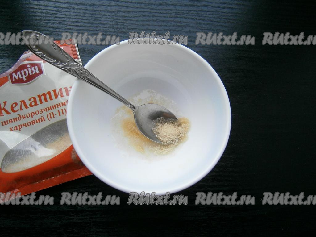 Желатин залить холодной водой, перемешать и оставить минут на 10-15 для набухания.