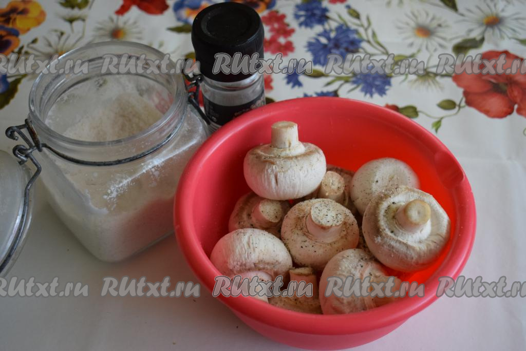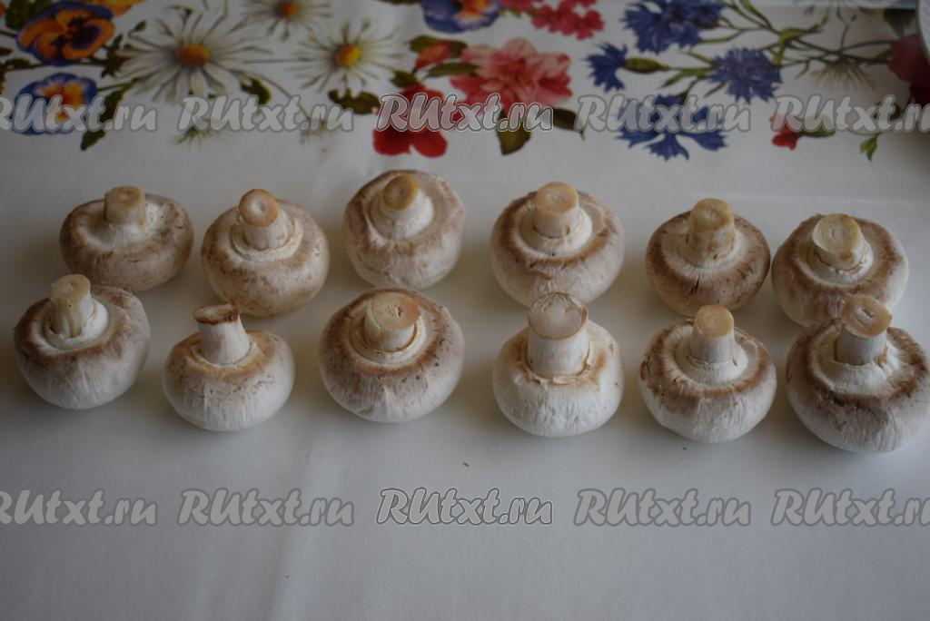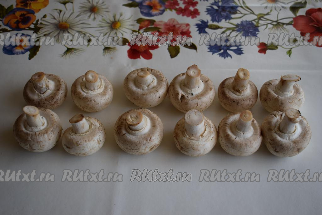 Шампиньоны очистить при помощи кисточки от крупного мусора, грибы не моем, чтобы они не пропитались лишней влагой.