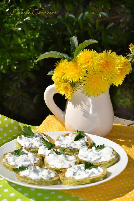 Даем блюду минут 5 пропитаться и подаем к столу. Ароматная и вкусная закуска из жареных кабачков и соуса готова!