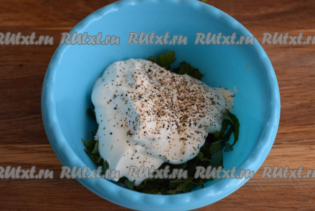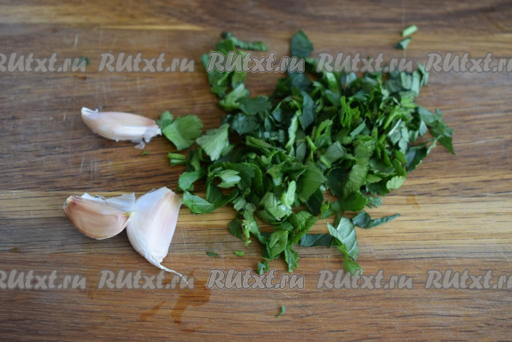 Для приготовления сметанно-чесночного соуса измельчаем зелень.