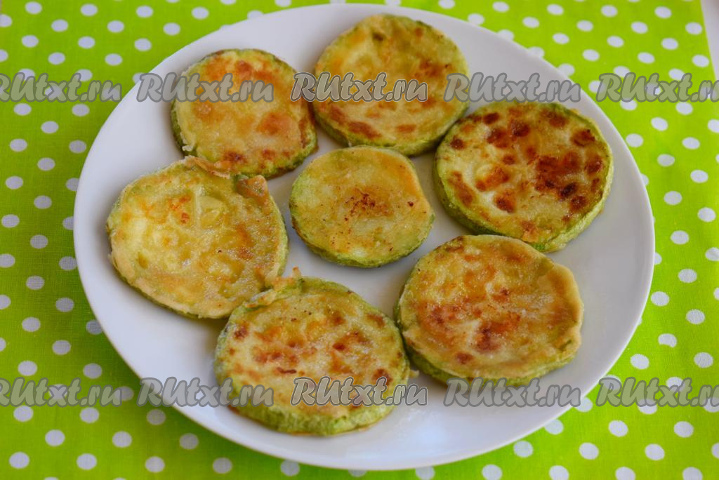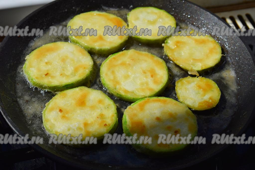 Жарим кабачки на среднем огне с двух сторон до золотистого цвета (примерно, по 5-7 минут с каждой стороны).