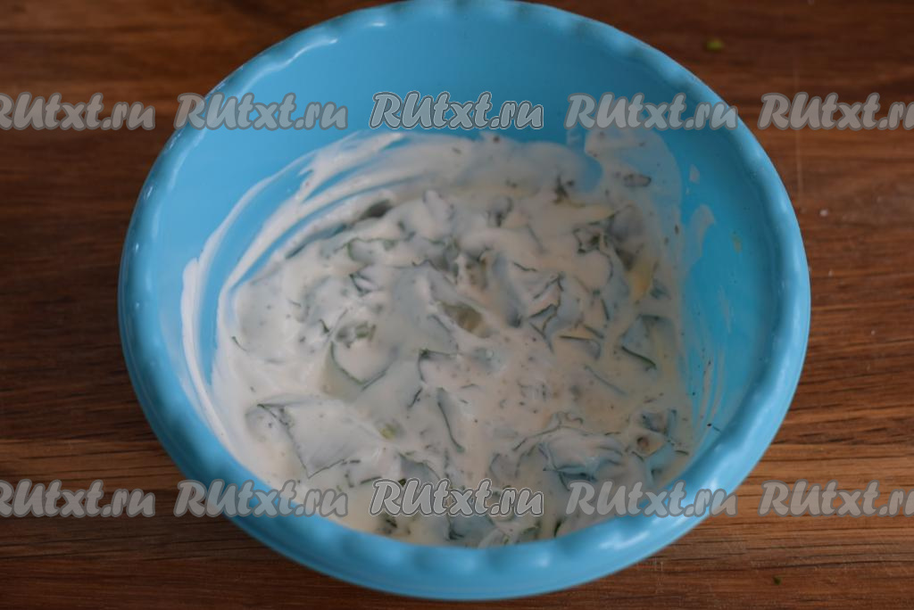 Перемешиваем сметанно-чесночный соус, пробуем и, если необходимо, доводим его до вкуса, исходя из собственных предпочтений (добавляем больше или чеснока, или сметаны, или соли и т.д.).