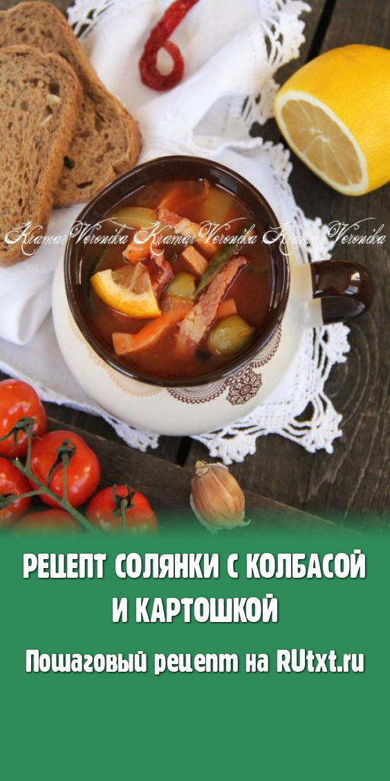Сегодня хочу предложить приготовить солянку с картофелем и колбасой. Особенность этого рецепта в том, что такую солянку можно сварить на воде (без мясного бульона) и получить наваристое, сытное первое блюдо. Главный секрет - это не жалеть колбасы, а лучше использовать различные виды колбас - так блюдо выходит более аппетитным и вкусным.