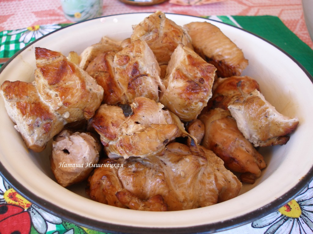 В процессе можно поливать мясо соком или минеральной водой.