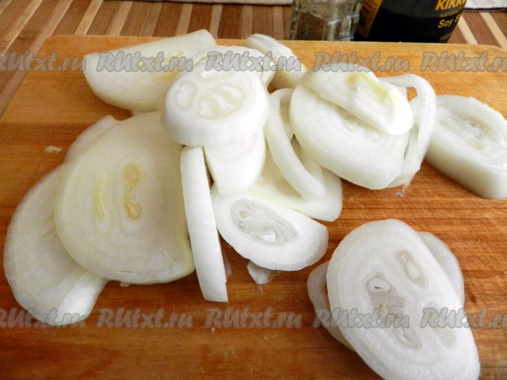 Лук очистить и нарезать кольцами.