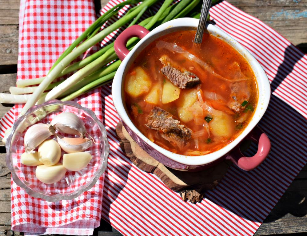 Даем борщу настояться под крышкой 5-10 минут. Подаем вкуснейший, наваристый борщ, добавив порционно в тарелки мясо. Его вкусно кушать со сметаной и свежим чесноком или зеленым луком. Борщ из говядины приготовить несложно, а вся семья будет сыта и довольна!