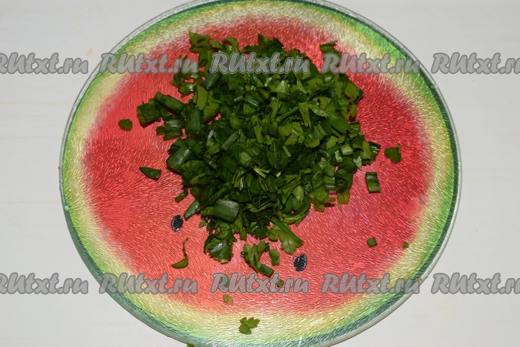 Измельчаем зелень.