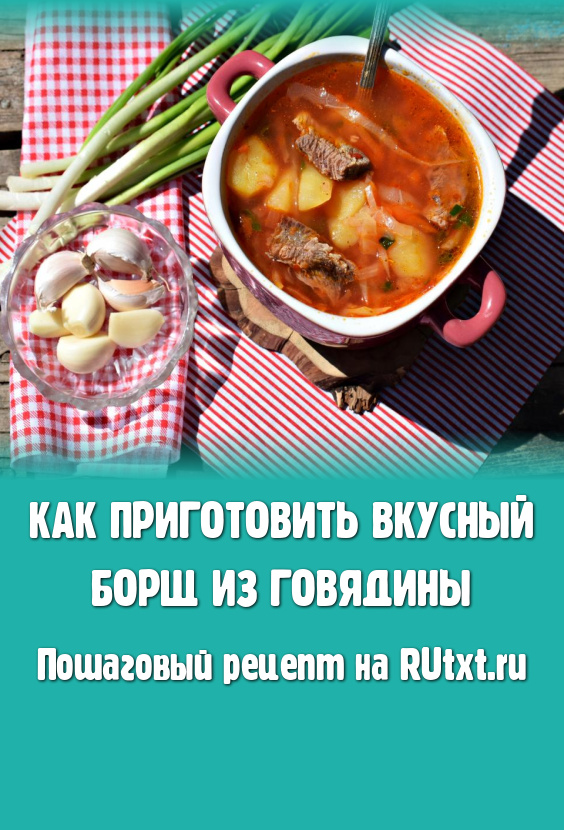 Вся моя семья очень любит борщ, поэтому он частый гость на нашем столе. Борщ из говядины получается наваристым, очень вкусным и сытным. Готовится он не быстро, но вы сможете значительно сократить время приготовления, если сварите говяжий бульон накануне. В готовый борщ добавляю нарезанную на кусочки говядину прямо перед подачей, для меня так удобнее распределять мясо поровну между всеми членами семьи. Попробуйте приготовить борщ по моему рецепту, я думаю, он вам понравится!