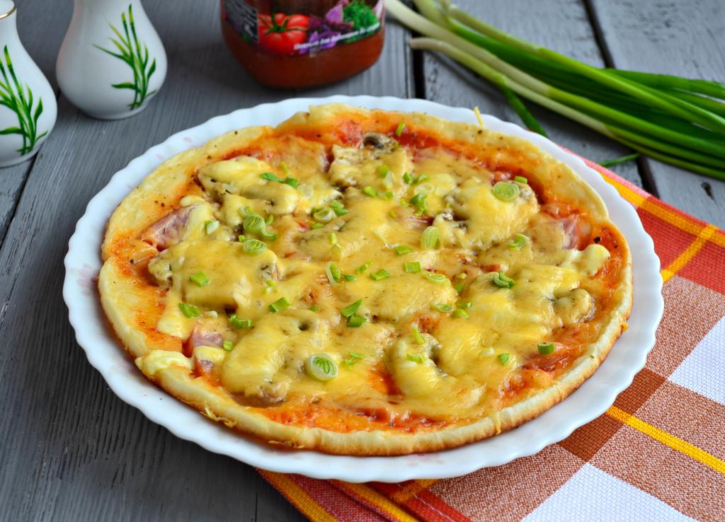 Если вы хотите что-то быстро придумать к завтраку или для перекуса, попробуйте ленивую пиццу на сметане и майонезе, приготовленную на сковороде. Для такой пиццы понадобится не более 15 минут и получается она очень вкусной. Начинкой может быть любая колбаса, грибы, отварное или жареное мясо и т.д., т.е. то, что есть у вас в холодильнике. Попробуйте, очень вкусно!