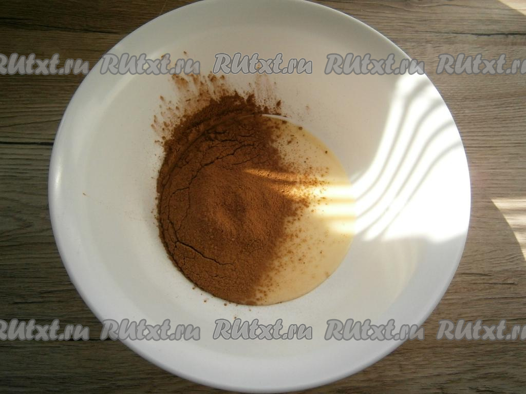 В сгущенное молоко хорошего качества добавить просеянный какао-порошок.