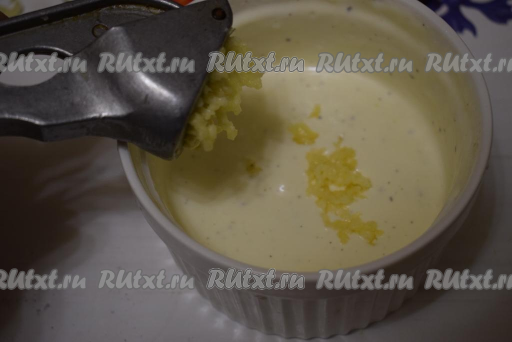 Добавляем к соусу чеснок, пропущенный через пресс, приправляем прованскими травами.