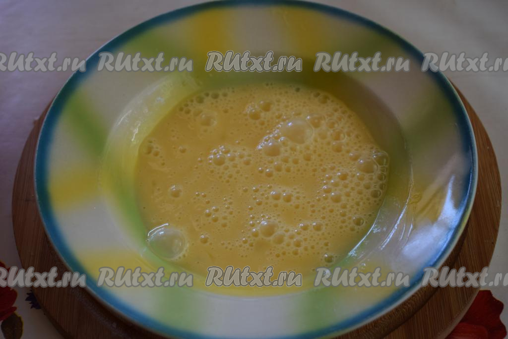 В отдельную тарелку вобьем яйца и с помощью вилки смешаем их до однородности, немного подсолим.