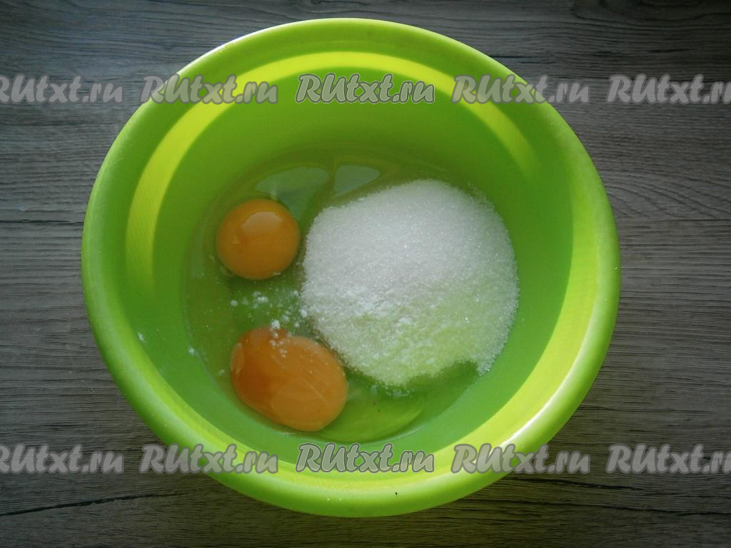 К сырым яйцам добавить сахар, соль и ванилин.