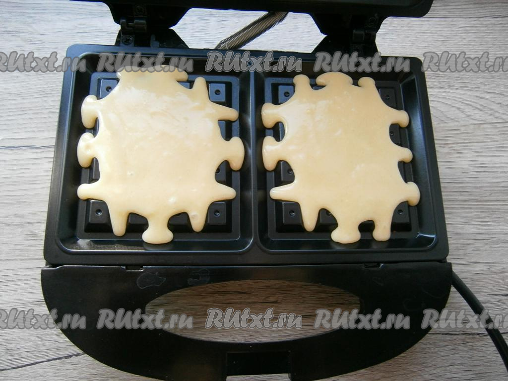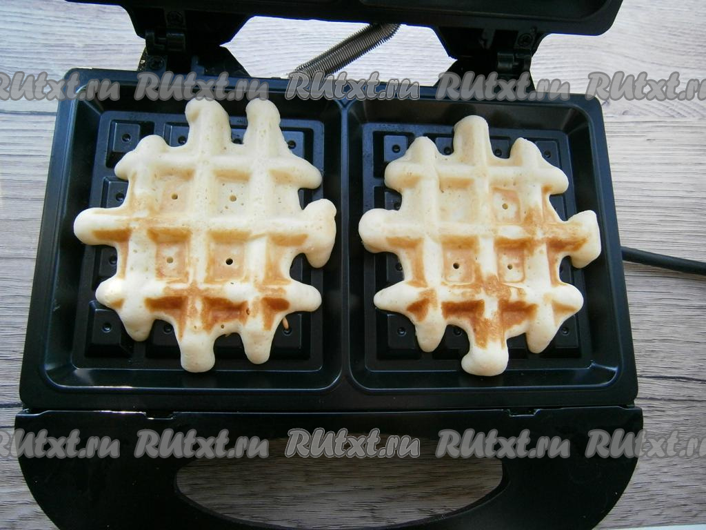Выпекать вафли около 5-6 минут (вафли должны немного зарумяниться).