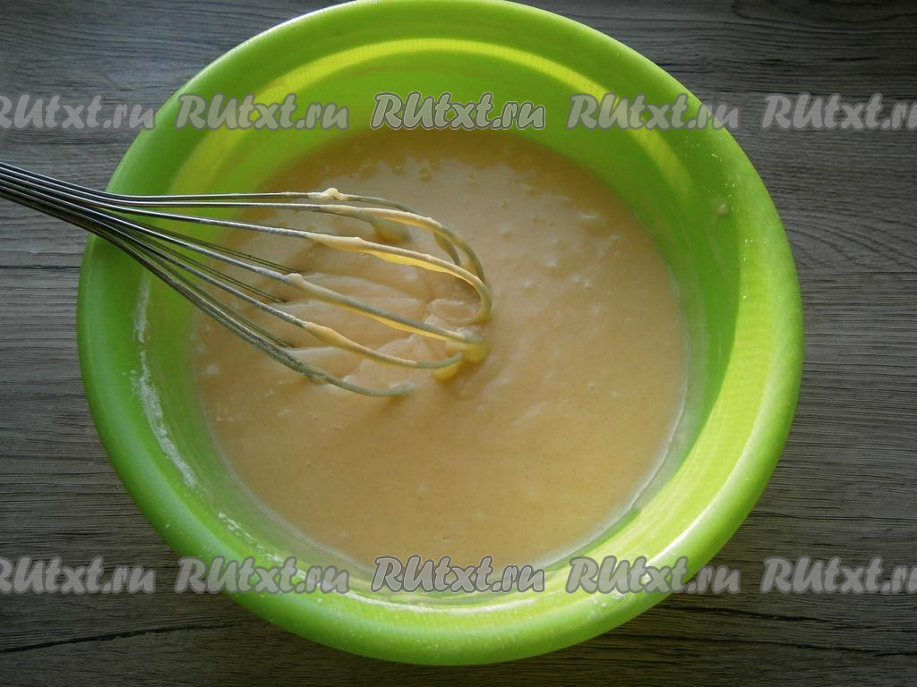 Тщательно перемешать венчиком, по консистенции тесто будет похоже на в меру густую сметану.