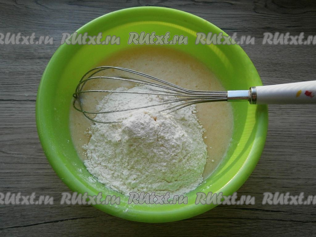 Всыпать муку и разрыхлитель.