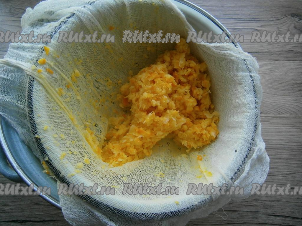 Затем через марлю отцедить жидкость в другую емкость, а выжимки выбросить.