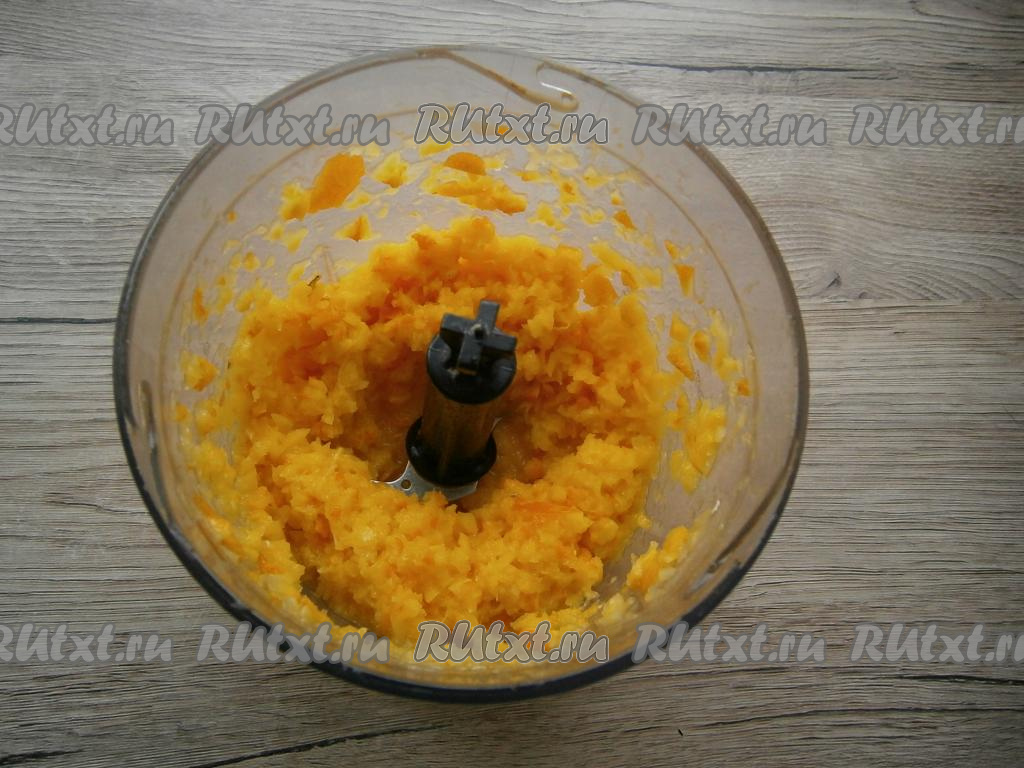 Измельчить апельсины до состояния кашицы.