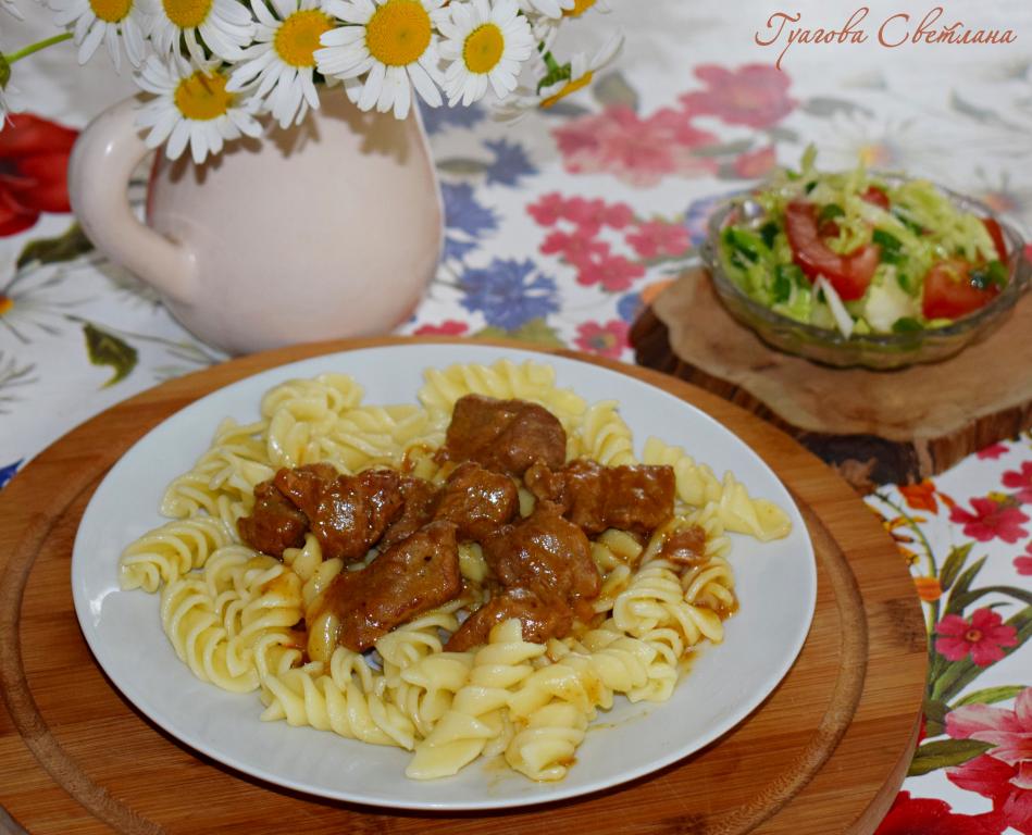Вкуснейшую, ароматную и насыщенную подливу из говядины, приготовленную в мультиварке, подать с гарниром. К такому сытному обеду или ужину прекрасно подойдет легкий салат из овощей. Попробовав такую подливу из говядины, я уверена, вы не раз будете возвращаться к этому рецепту, ведь это так вкусно!