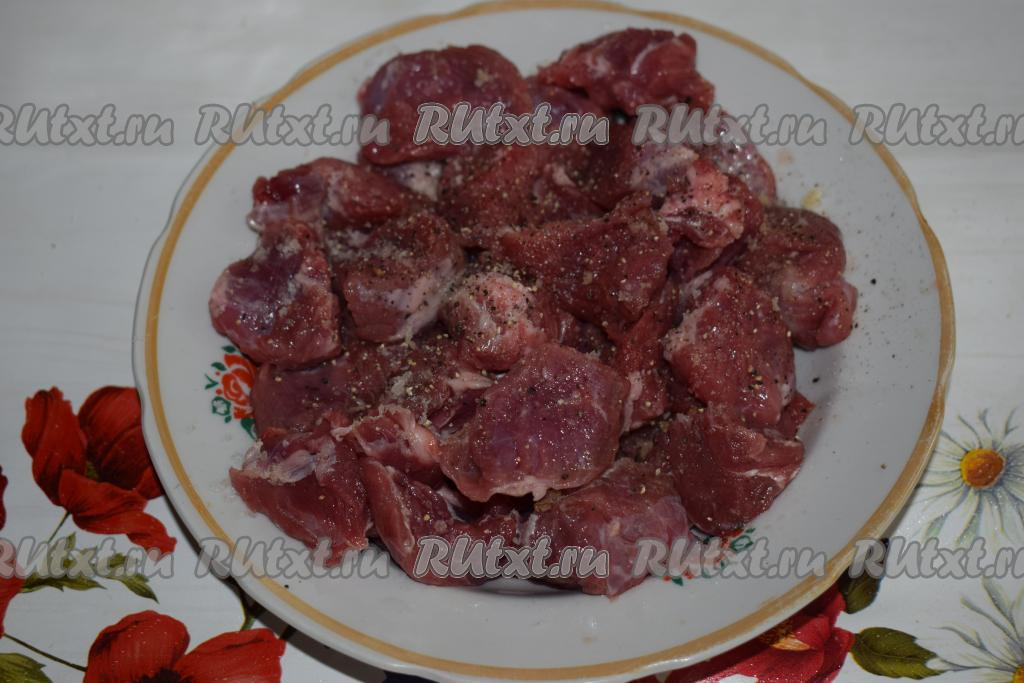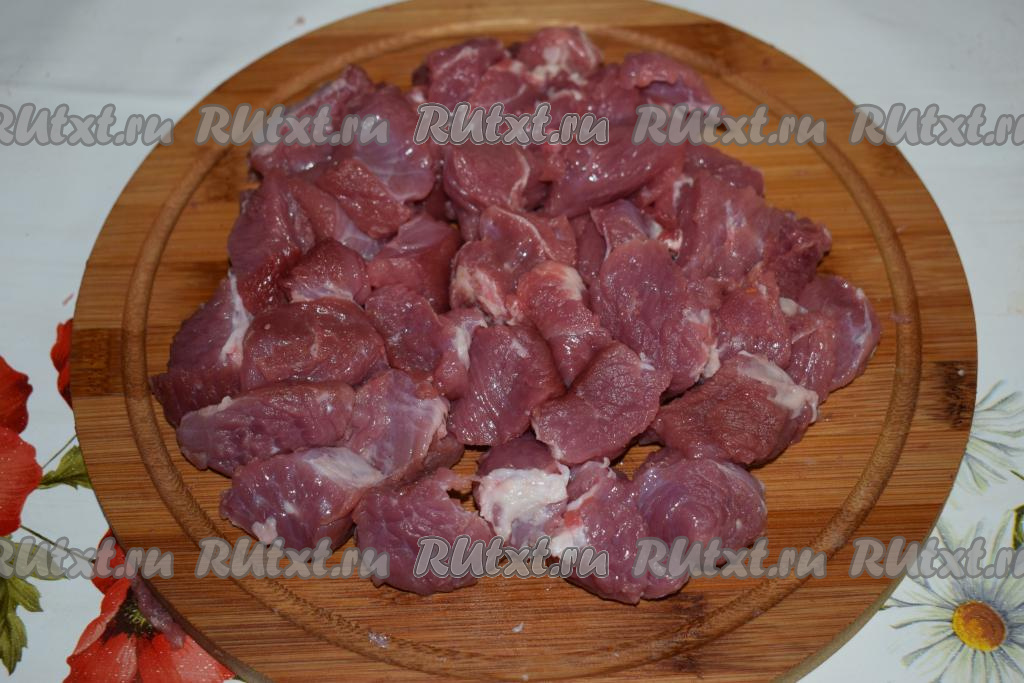 Говядину промыть, обсушить, нарезать на кусочки, примерно, равного размера.