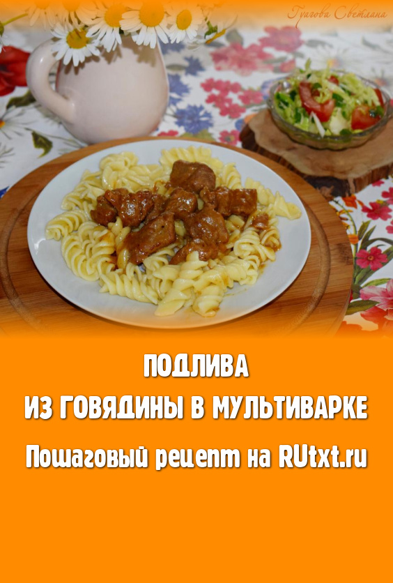 Подлива из говядины, приготовленная в мультиварке, - это очень вкусное блюдо. Такая мясная подлива подходит к любому гарниру на ваш выбор - кашам, макаронным изделиям, картофельному пюре и овощам. Попробуйте приготовить подливу из говядины по моему рецепту и, я уверена, вам понравится это блюдо! А в сочетании с гарниром вы получите насыщенный, вкусный и сытный обед или ужин, который понравится всей семье.