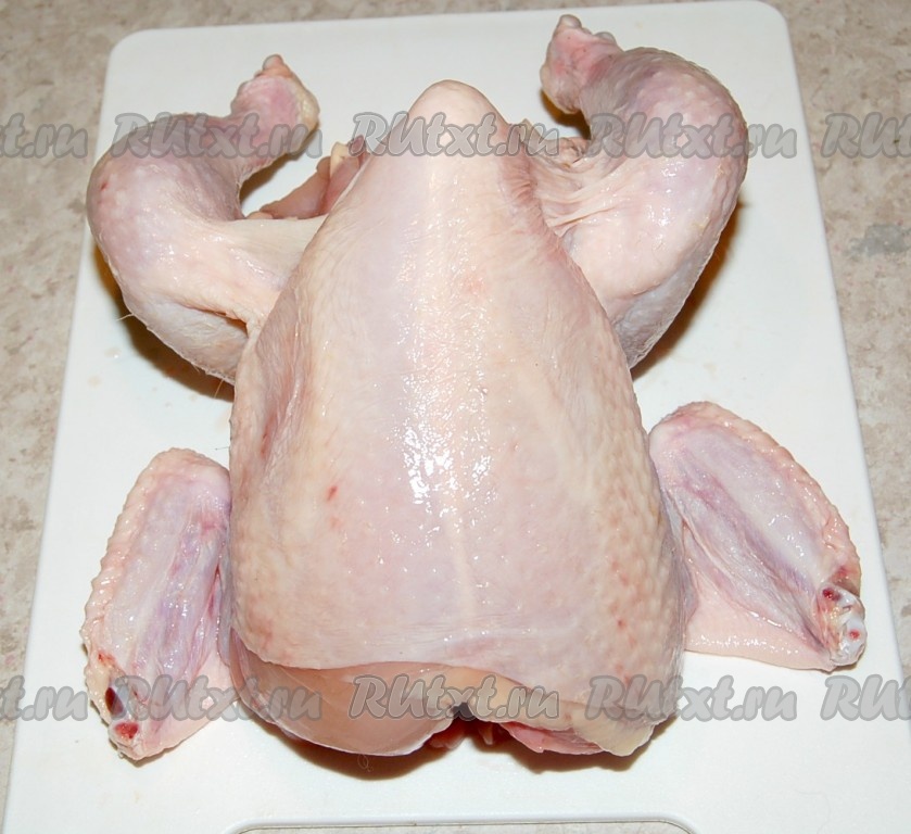 Приготовить курицу. Помыть, отрезать лишний жир.