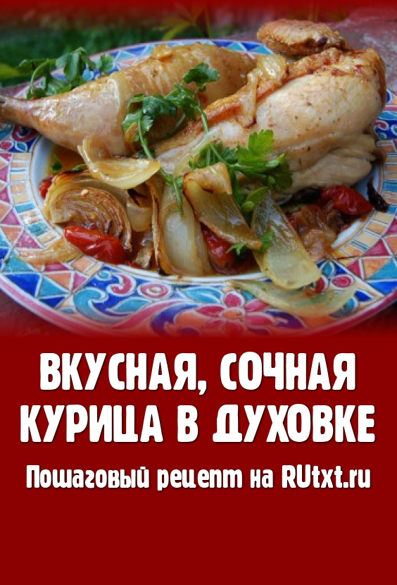 Через 40-50 минут проверяем нашу вкусную, сочную курицу и, если она готова, вынимаем противень из духовки.