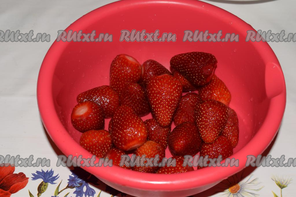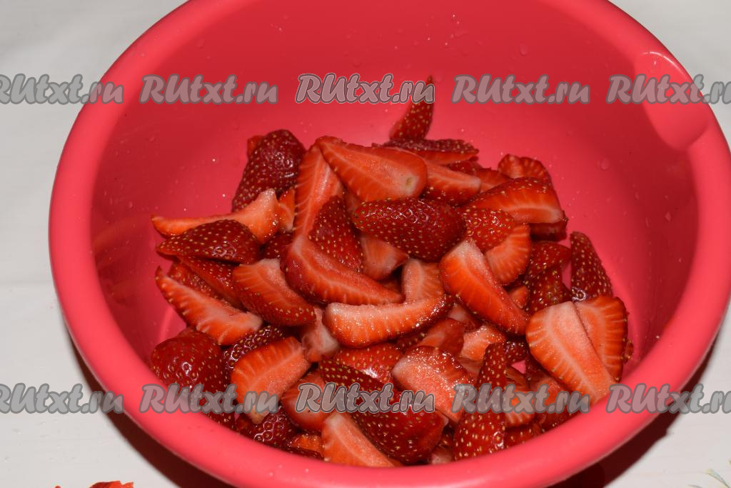 Удаляем у клубники чашелистики и нарезаем ее на дольки.