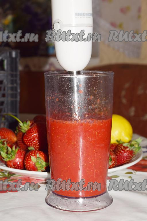 Включаем блендер и перетираем ягоды в пюре в течение, примерно, 2-3 минут.