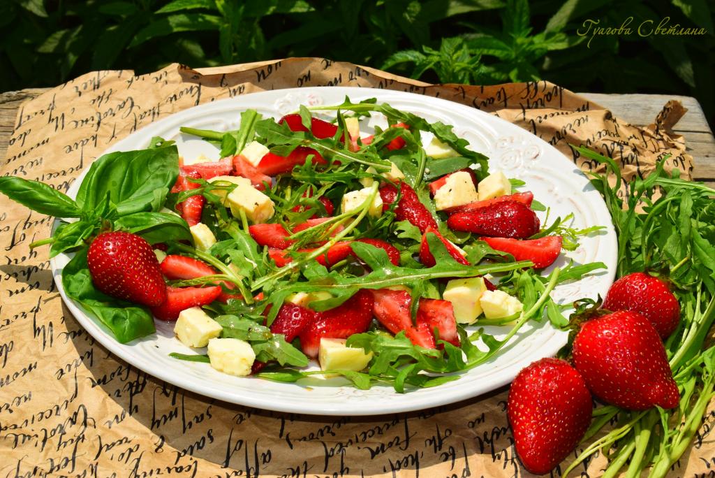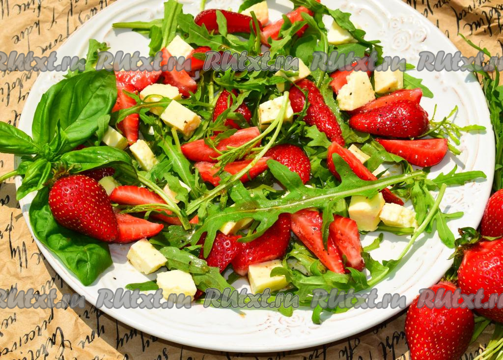Легкий, очень интересный и полезный салат с клубникой, сыром и рукколой подарит вам новые вкусовые ощущения. В этом летнем салатике прекрасно сочетаются сладость клубники, терпкость рукколы, мягкость сыра и пикантная заправка. Этот яркий, ароматный салат получается очень вкусным. Попробуйте!