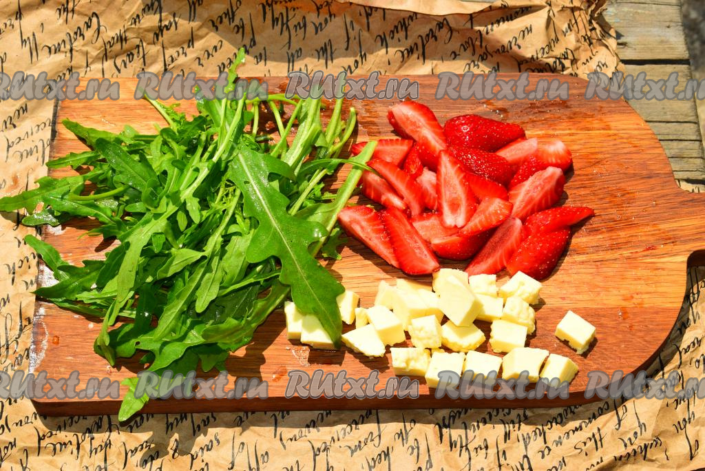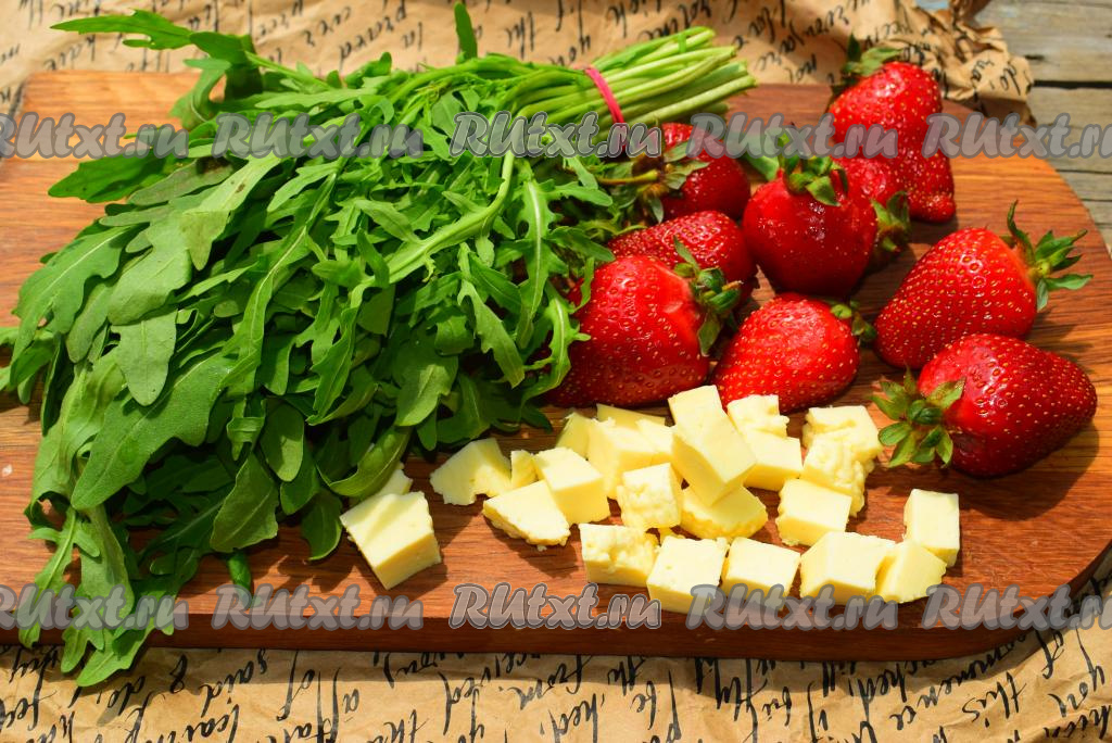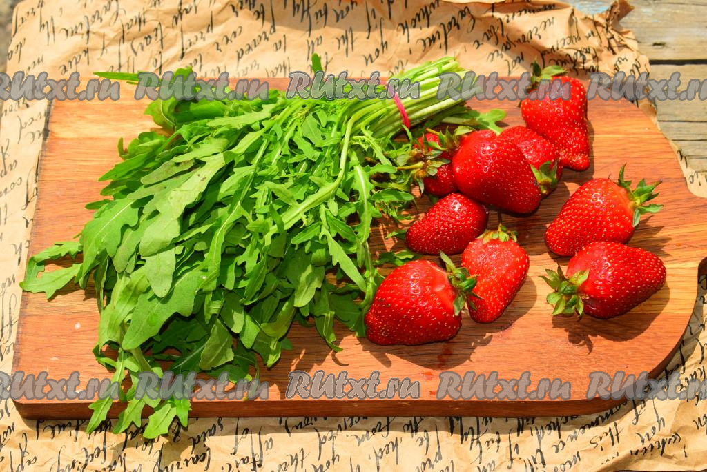 Вымоем рукколу и клубнику, дадим стечь воде.