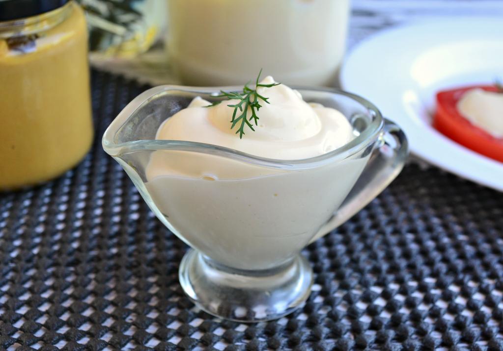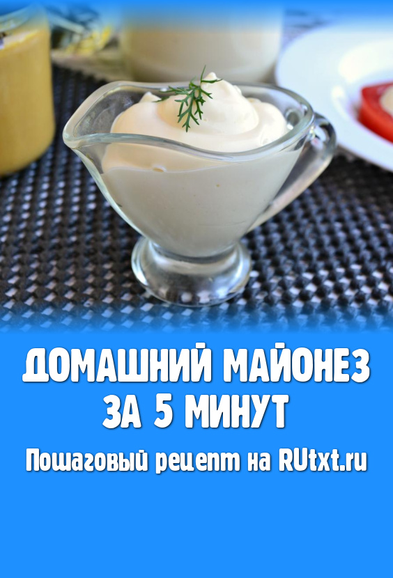 Густой, очень вкусный домашний майонез, приготовленный за 5 минут, станет отличной заправкой для различных салатов. Хранить его можно не более 3-4 суток в закрытой стеклянной таре в холодильнике.