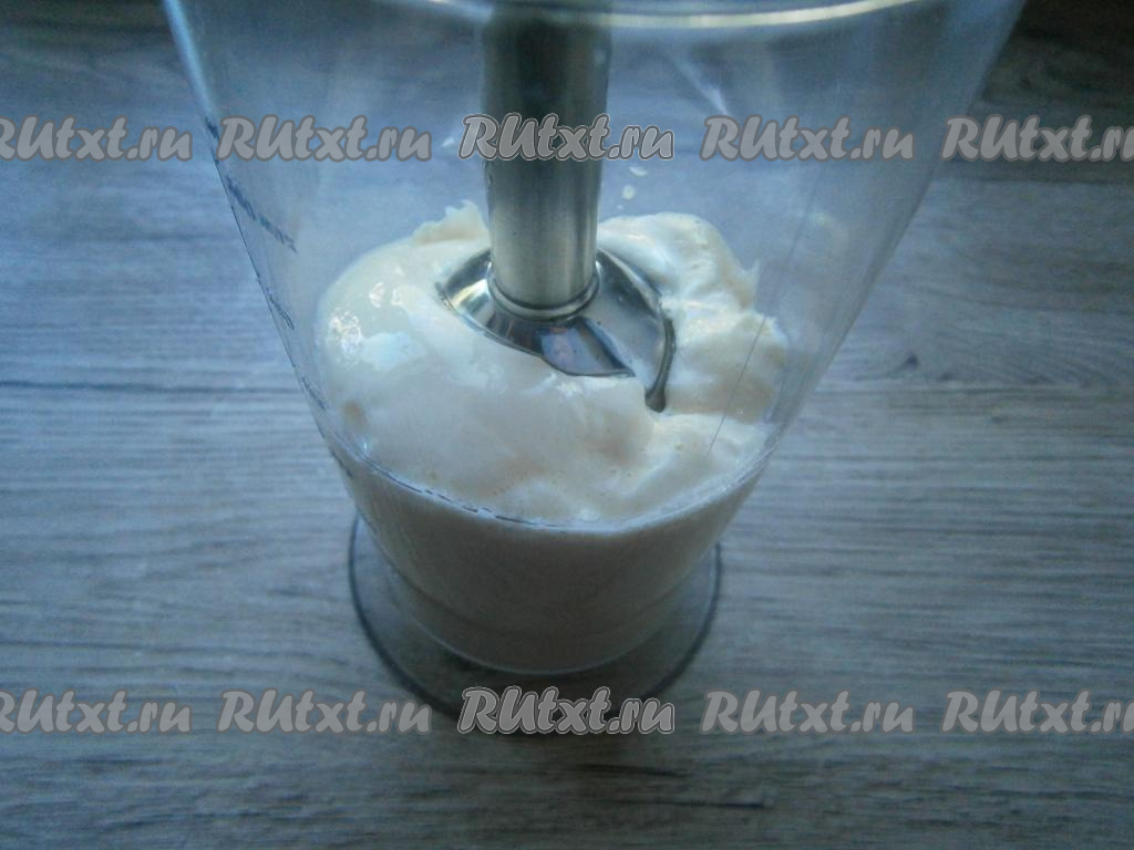 Медленно поднимая и опуская блендер, продолжать взбивание, пока масса не загустеет.