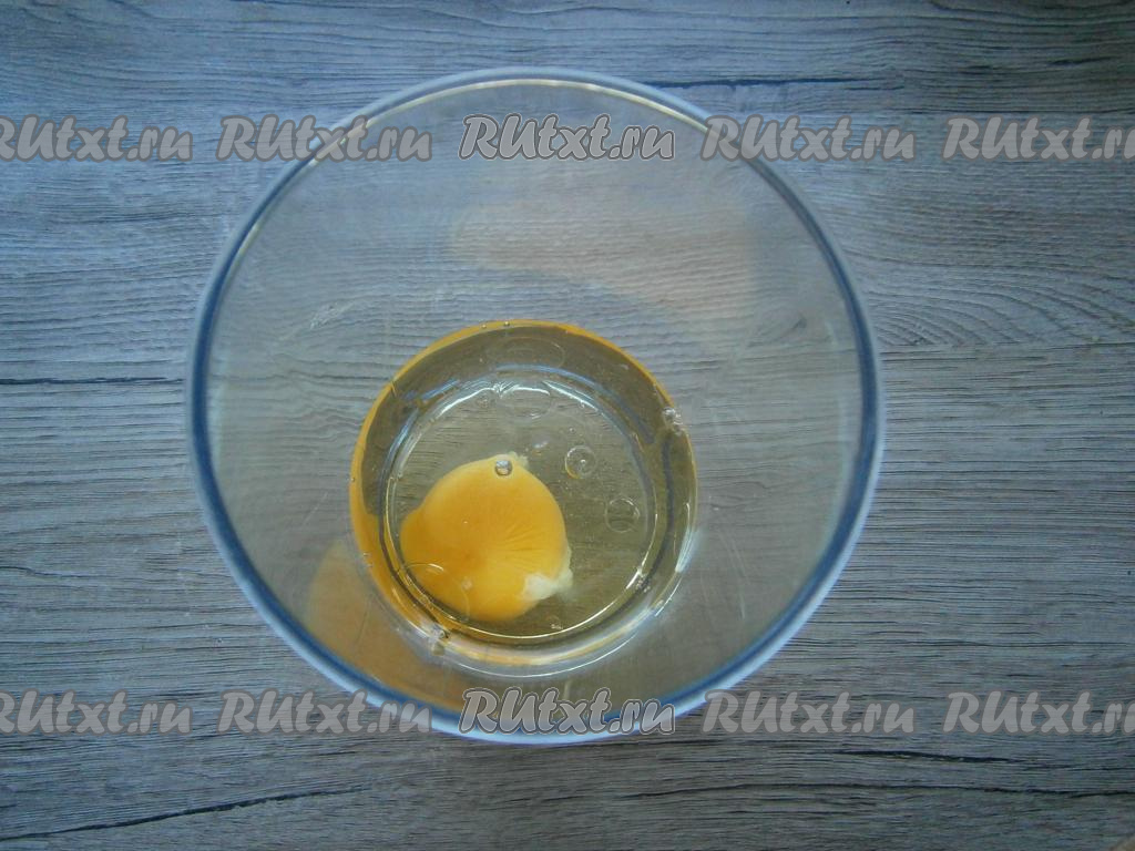 Также аккуратно влить растительное масло, чтобы оно не смешалось с яйцом.