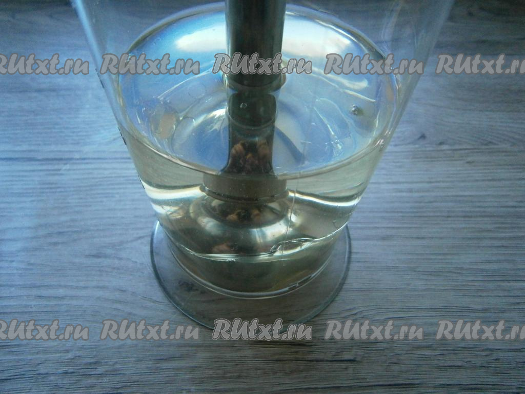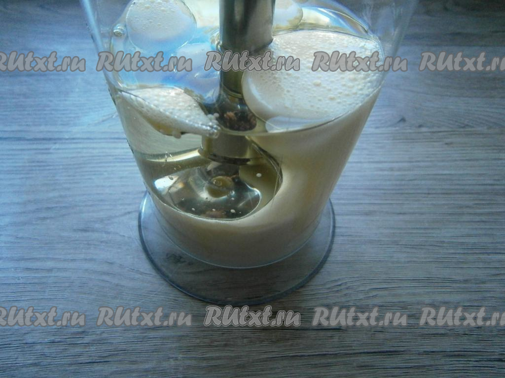 Погружной блендер опустить в стакан, чтобы насадка покрыла желток.