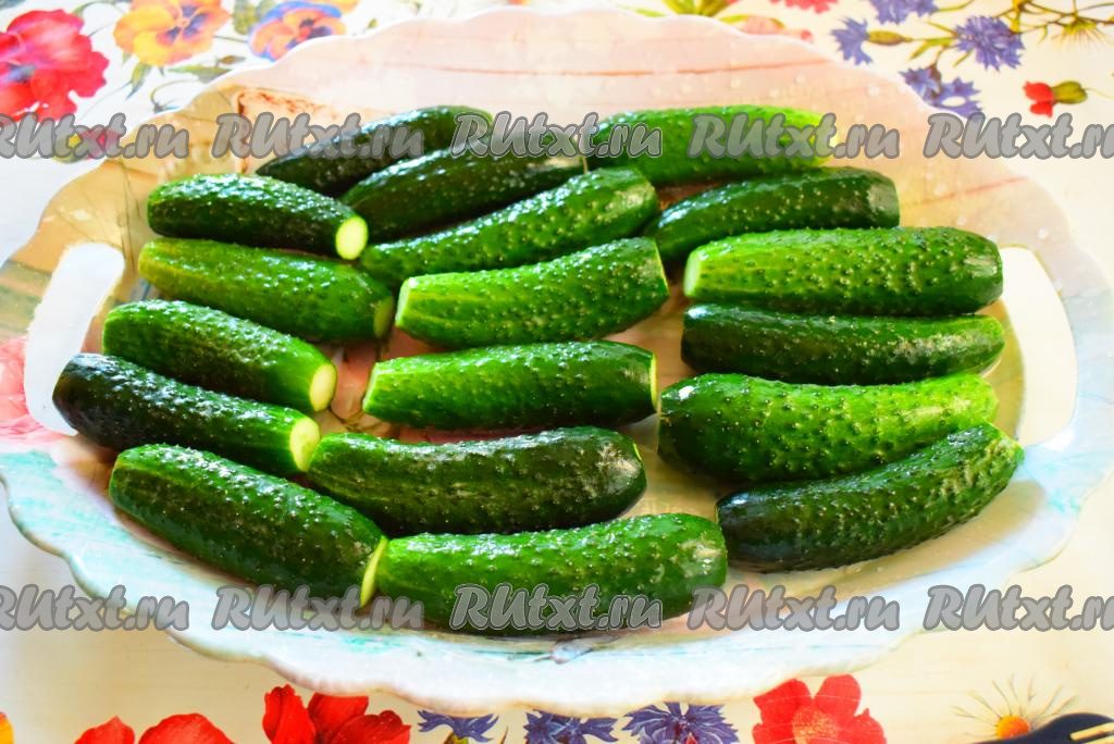 Обрежем носики у огурцов с двух сторон (этот этап можно и пропустить, но время приготовления огурчиков в таком случае увеличится).